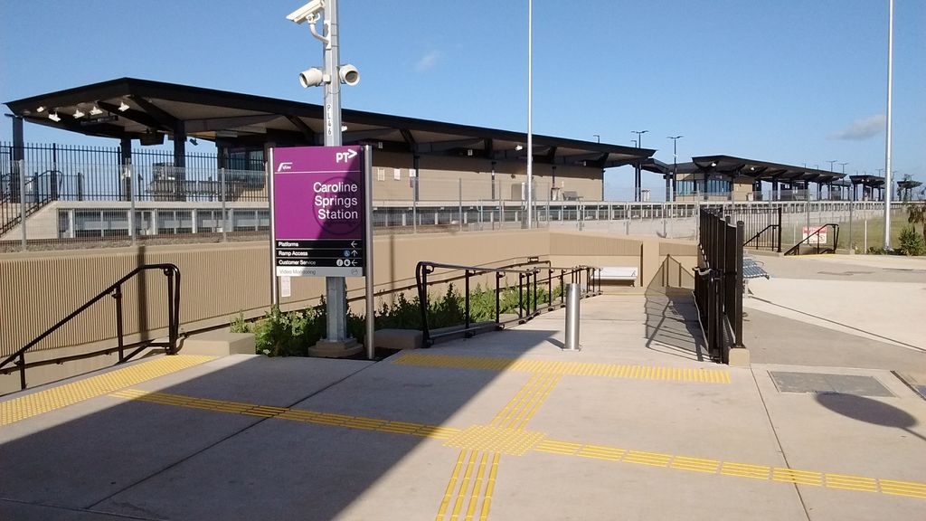 Caroline Springs railway station is located on the Serviceton line in Victoria, Australia. It serves the western Melbourne suburb of Ravenhall, and opened on 28 January 2017.