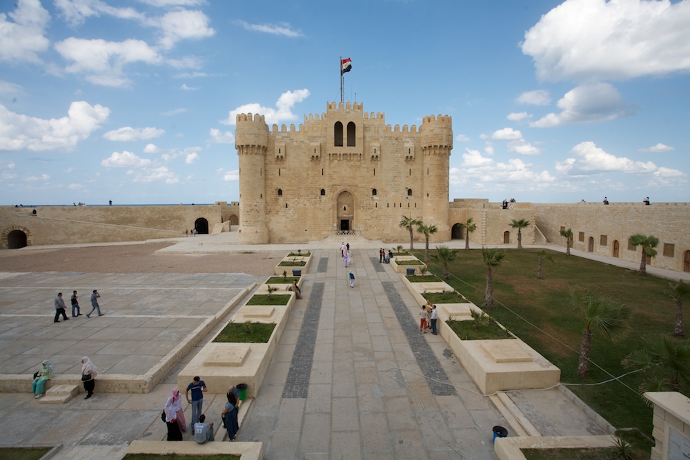 The Citadel of Qaitbay (or the Fort of Qaitbay; Arabic: قلعة قايتباي) is a 15th-century defensive fortress located on the Mediterranean sea coast, in Alexandria, Egypt. It was built from 1477 to 1479 AD (882–884 AH) by Sultan Al-Ashraf Sayf al-Din Qa'it Bay. The Citadel is situated on the eastern side of the northern tip of Pharos Island at the mouth of the Eastern Harbour.