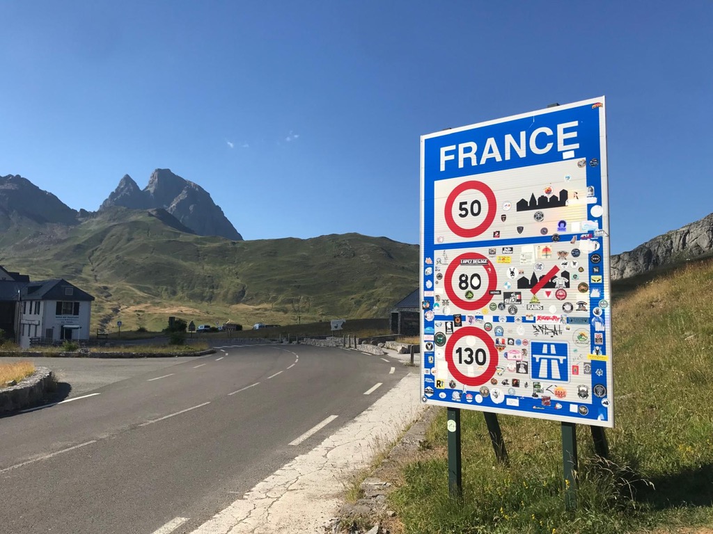 The Col du Pourtalet, El Portalet or Portalet d'Aneu is a mountain pass and border crossing in the Pyrenees, between France and Spain. The pass reaches an elevation of 1,794 m (5,886 ft), and links the Ossau and Tena valleys. The road across the pass is known as the A-136 on the Spanish side, and links to Biescas and Huesca. On the French side the D934 road connects the pass to the towns of Laruns, Oloron-Sainte-Marie and Pau. The pass is kept open in the winter, but in case of heavy snowfall may be closed for a couple of days. Due to the Schengen Agreement, the checkpoint is not currently functional. The French side of the pass falls within the commune of Laruns in the département of Pyrénées-Atlantiques, whilst the Spanish side is within the municipality of Sallent de Gállego within the province of Huesca.