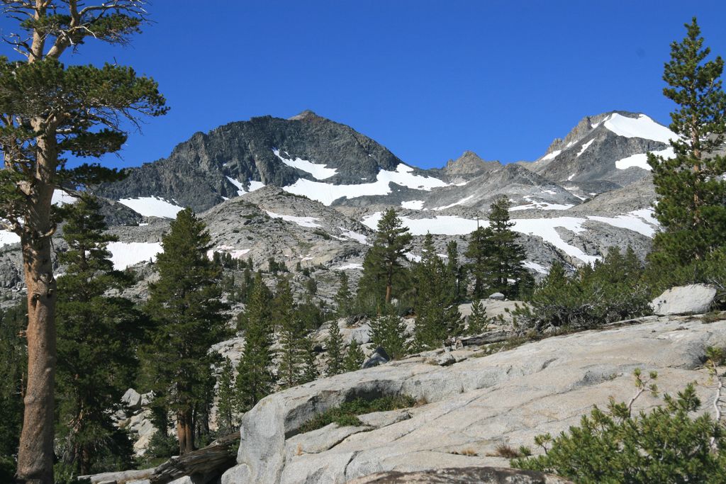 Donohue Pass is a high mountain pass on the boundary between Yosemite National Park and the Ansel Adams Wilderness. Its elevation is 11,066 feet (3,373 m). It is situated between Mount Lyell and Donohue Peak. The John Muir Trail and the Pacific Crest Trail both transverse the pass. Following the John Muir Trail, the pass is 6.3 miles (10.1 km) from Thousand Island Lake, and 12.8 miles (20.6 km) from Tuolumne Meadows. Donohue Pass is the sixth highest pass of the ten named passes on the John Muir Trail. The pass and Donohue Peak were named in 1895 for Sergeant Donohue, Troop K, 4th Cavalry who made the first ascent of the peak.