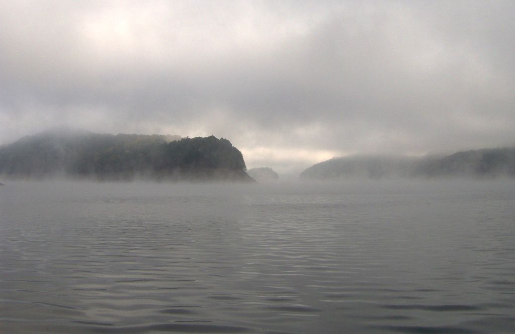 Fontana Lake is a reservoir impounded by Fontana Dam on the Little Tennessee River, and is located in Graham and Swain counties in North Carolina. The lake forms part of the southern border of Great Smoky Mountains National Park and the northern border of part of the Nantahala National Forest. Depending on water levels, the lake is about 17 miles (27 km) long. The eastern end is the Tuckasegee River near Bryson City. It has an average depth of 135 feet (41 m) and reaches a maximum depth of 440 feet (130 m), making it the deepest lake in North Carolina. The lake has many inlets into coves and many islands formed from former mountain peaks, especially near the eastern end. As with most dam-impounded lakes, the steep banks are exposed when water levels are low. Many towns were submerged shortly after the creation of Fontana Lake, such as Proctor and Judson. Fontana Lake provides the only access into the most remote areas of the National Park, unless visitors undertake a multi-day hike to get there. When the lake is at the normal summer level, a boat may be used to access remote trailheads such as Hazel Creek. From the observation tower on Clingmans Dome, on a clear day the lake can be seen nearly a mile below. While the maximum controlled elevation of the lake (top of dam gates) is 1,710 ft (520 m), the normal Summer surface elevation is 1,703 ft (519 m). NC 28 roughly parallels the southern shore of the lake, and US 19, between Bryson City and Wesser/Lauada, briefly skims an inlet at the extreme southeastern edge.