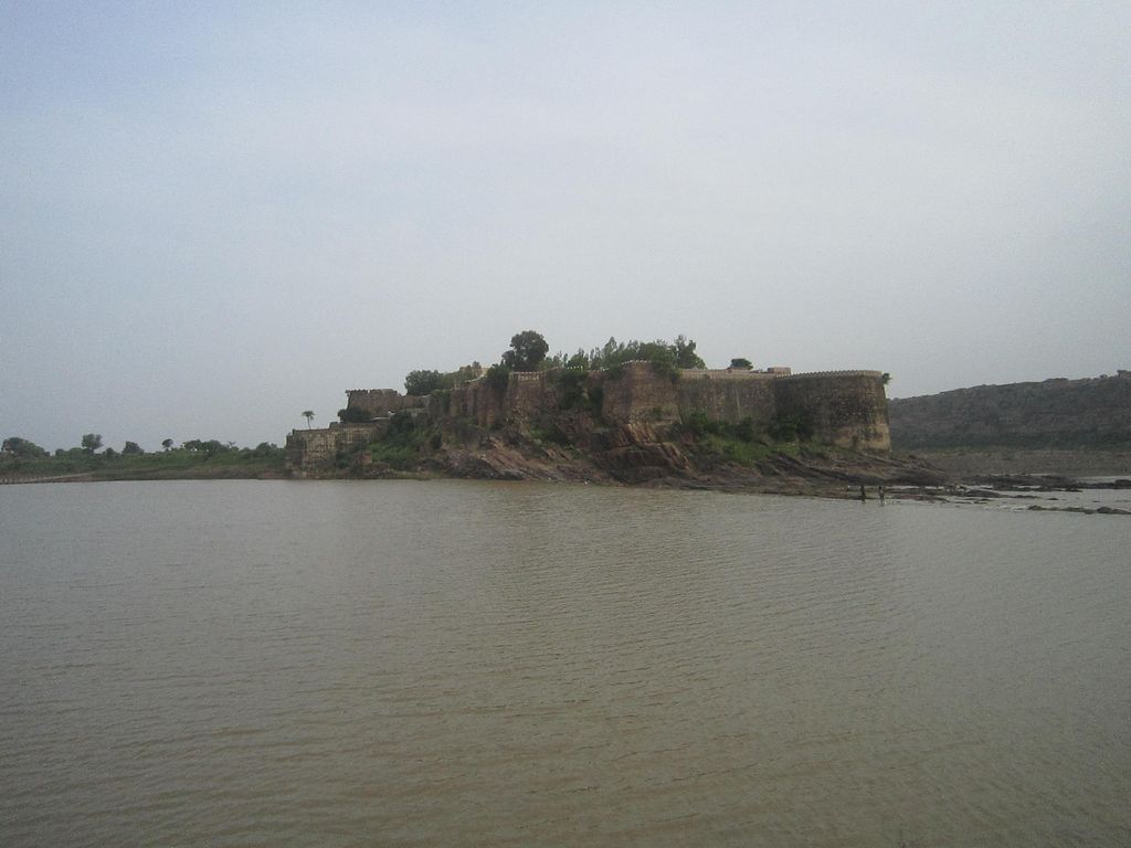 Gagron Fort (Hindi/Rajasthani: गागरोन का किला) is a hill and water fort and is situated in Jhalawar district of Rajasthan, in the Hadoti region of India. It is an example of a hill and water fort. The fort was built by Bijaldev Singh Dod (a Rajput king) in the twelfth century. Later, the fort has also been controlled by Sher Shah and Akbar. The fort is constructed on the confluence of Ahu River and Kali Sindh River. The fort is surrounded by water on three sides and a moat on the forth side and hence earned the name Jaladurg (Hindi/Rajasthani: जलदुर्ग, translation: Water Fort). It was designated a UNESCO World Heritage Site in 2013 as a part of Hill Forts in Rajasthan.