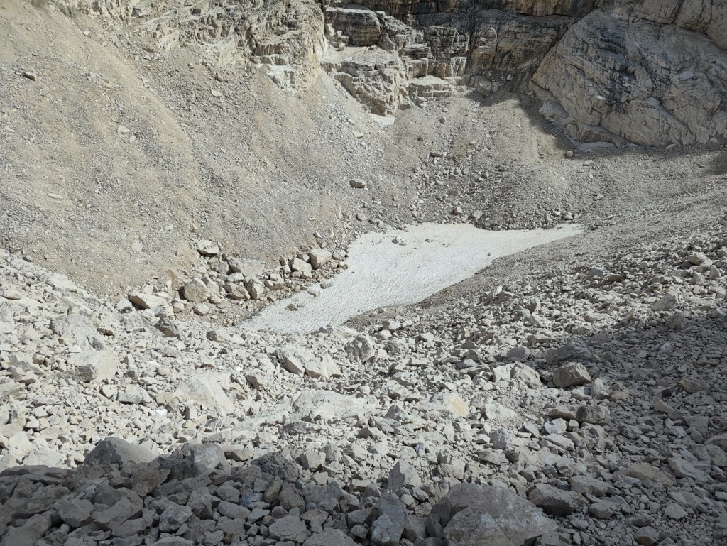 The Calderone glacier (Italian: Ghiacciaio del Calderone) is a glacier located in the Apennine Mountains in Abruzzo, Italy. Found in the Gran Sasso d'Italia mountain group, it lies just beneath the Corno Grande, the highest peak in the Apennines. With the disappearance of the Corral de la Veleta glacier in the Sierra Nevada in 1913, "Il Calderone" became one of Europe's southernmost known glaciers (42°28′N, 13°33′E), being slightly to the north only compared to Snezhnika (latitude of 41°46′09″ N) and Banski Suhodol Glaciers in Pirin Mountain in Bulgaria. If present deglaciation trends continue, the Calderone may soon disappear as well. The discovery of a number of small glaciers in the Accursed Mountains in 2009 seemed to threaten Calderone's positions.