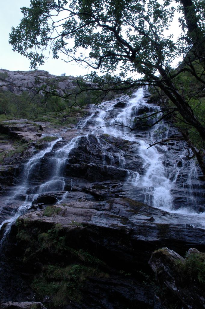 Glen Nevis (Scottish Gaelic: Gleann Nibheis) is a glen in Lochaber, Highland, Scotland, with Fort William at its foot. It is bordered to the south by the Mamore range, and to the north by the highest mountains in the British Isles: Ben Nevis, Càrn Mor Dearg, Aonach Mòr, and Aonach Beag. It is home to one of the three highest waterfalls in Scotland, Steall Falls, where the Allt Coire a'Mhail joins the Water of Nevis in the glen. Below the waterfall is a steeply walled and impressive gorge. The scenic beauty of the glen has led to its inclusion in the Ben Nevis and Glen Coe National Scenic Area, one of 40 such areas in Scotland. A public road runs for 10 km up the Glen, becoming single track after 7 km. There is a hotel, Scottish Youth Hostels Association hostel, and campsite at the bottom of the glen, near Fort William, and a small hamlet further up at Achriabhach. From the car park at the end of the Glen Nevis road, a path continues through a gorge. After a scramble up this rocky path, the view opens up and the path leads into the peaceful upper glen. A wire bridge crosses to the base of the waterfall. Rebuilt by the famous engineer Tom Russell while a member of the Junior Royal Engineers (Dover) JLRRE 82 Fld Sqn MacPhee troop. This bridge was closed for three months in 2010 when one of the cables snapped. The path has been improved periodically to ease access and to reduce the damaging effects of soil erosion caused by many walkers, but it remains challenging in places and, as the sign at the car park warns, potentially fatal. There have been several accidents in Glen Nevis, including the death of a young walker in August 2006. Several films have been shot in Glen Nevis, including some scenes from the Harry Potter movies, Highlander, Highlander III: The Sorcerer, Braveheart and Rob Roy.