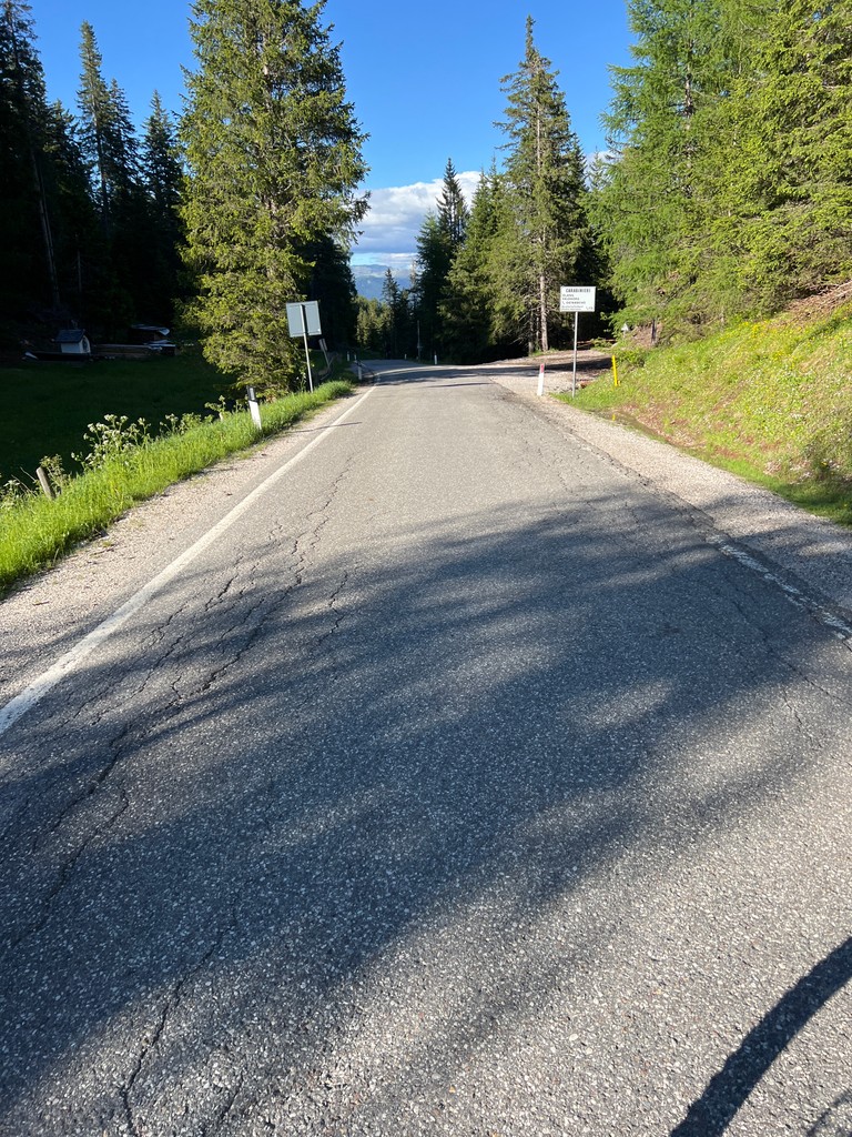 The Furkelpass is a mountain pass in South Tyrol, Italy. The Furkelpass also Furkelsattel or simply the Furkel called (Ladin Ju de Furcia, Italian Passo Furcia), is a 1789 m high mountain pass in the Dolomites. The pass lies between the 2275 m high Kronplatz in the north and the 2507 m high Piz da Peres in the south and links the towns of Olang in the Puster Valley and San Vigilio in Mareo. The pass marks the linguistic border between the German and Ladin speaking areas of northern Italy. The climb is 19 km long and rises 744 meters, with a maximum gradient of 15%. The road has repeatedly attracted the Giro d'Italia (in 1981, 1994, 1997, 2004, 2006, 2008 and 2010), and the "Transalp" (crossing of the Alps by bicycle). The pass is open in winter. As it crosses the Plan de Corones skiing resort, skiers are routed via a bridge over the pass road. From the pass, there is a direct connection to the Kronplatz and to San Vigilio. Since 2003 there has been an artificial lake on the pass, which is required for artificial snow.