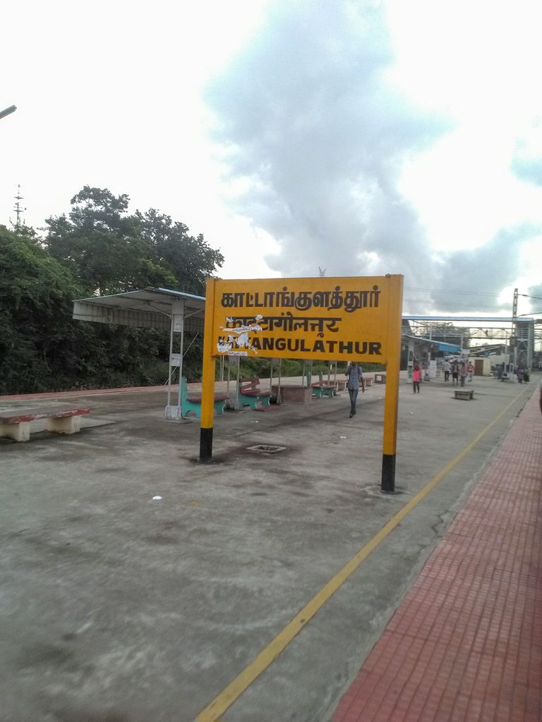 Kattangulathur railway station (station code: CTM) is an NSG–5 category Indian railway station in Chennai railway division of Southern Railway zone. It is one of the railway stations of the Chennai Beach–Chengalpattu section of the Chennai Suburban Railway Network. It serves the neighbourhood of Kattankulathur, a suburb of Chennai. It is situated at a distance of 45 km from Chennai Beach junction and is located on NH 32 in Kattankulathur, with an elevation of 51 m above sea level.