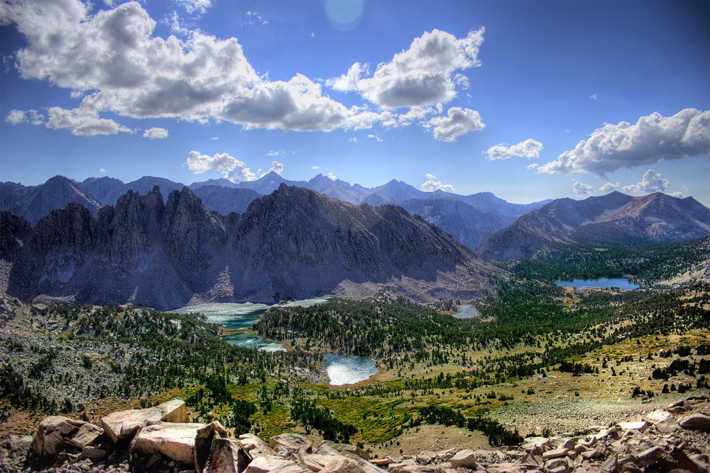 Kearsarge Pass is a pass in the Sierra Nevada of California. The pass lies on the Sierra Crest at 11,709 feet (3,569 m). The pass permits foot traffic between Kings Canyon National Park and the John Muir Wilderness. The pass was named after the Kearsarge mine to the east, which was named by its owners after the USS Kearsarge, the ship that destroyed the CSS Alabama. The Alabama Hills were named after the latter ship, and the mine was named in reaction. The first known crossing of Kearsarge Pass was in 1864.