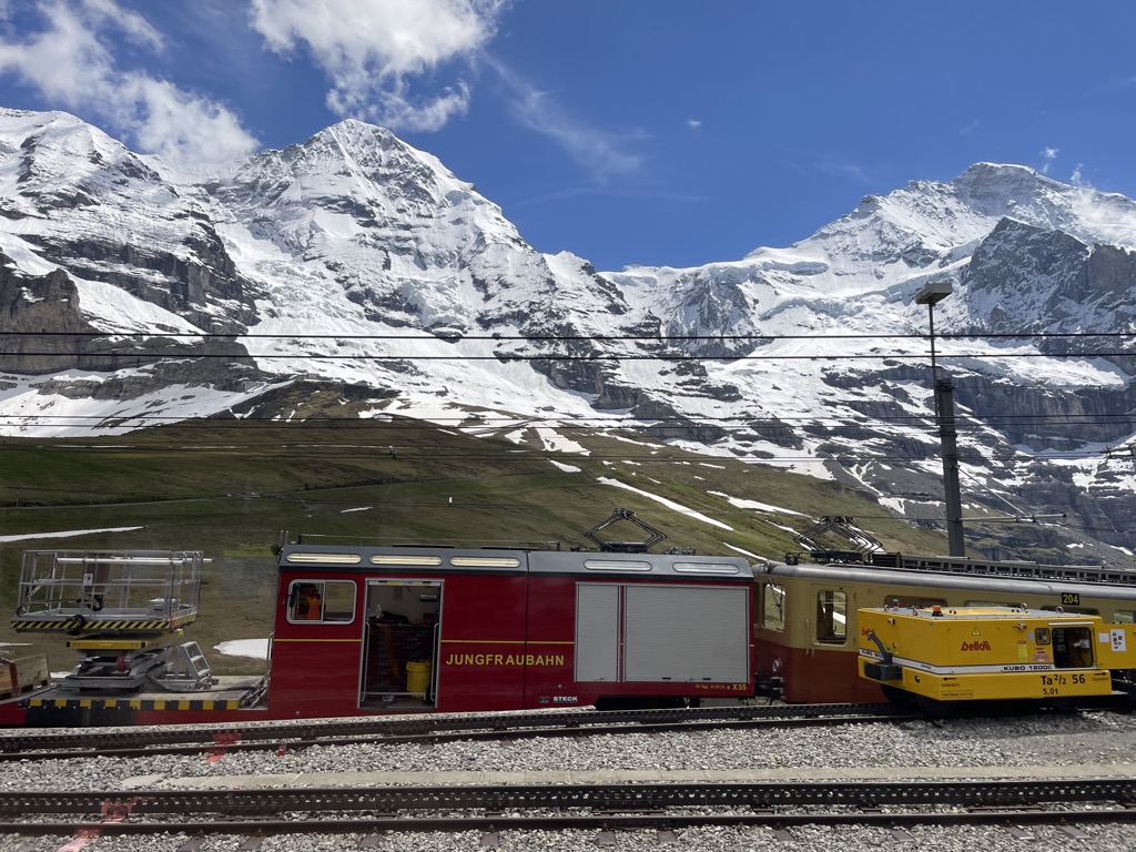 The Kleine Scheidegg (English: Little Scheidegg) is a mountain pass at an elevation of 2,061 m (6,762 ft), situated below and between the Eiger and Lauberhorn peaks in the Bernese Oberland region of Switzerland. The name means "minor watershed", as it only divides the two arms of the Lütschine river, both converging at Zweilütschinen, while the nearby Grosse Scheidegg divides the Lütschine from the Rychenbach stream. The pass is traversed by a walking trail and the Wengernalp Railway, which both connect the villages of Grindelwald with Lauterbrunnen, passing through Wengen between the pass summit and Lauterbrunnen. In winter, Kleine Scheidegg is the centre of the ski area around Grindelwald and Wengen. In summer, it is a popular hiking destination, and is one of the passes crossed by the Alpine Pass Route between Sargans and Montreux. The Jungfrau Marathon, a mountain race that takes place every year in early September, ends at Kleine Scheidegg. The Kleine Scheidegg railway station is sited at the summit of the pass. Besides being an intermediate stop on the Wengernalp Railway, the station is also the lower terminus of the Jungfrau Railway, which climbs steeply through tunnels inside the Eiger and Mönch mountains up to its terminal at the Jungfraujoch, the highest point reachable by rail in Europe. Both railways operate year-round, and any passengers travelling to the Jungfraujoch must change trains at Kleine Scheidegg. The pass is linked to the summit of the Lauberhorn and to Arvengarten, on the approach to the pass from Grindelwald, by chairlifts. There are also several restaurants and hotels at the summit of the pass, including the historic Hotel Bellevue des Alpes that dates back to 1840.