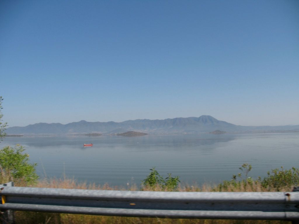 Lake Cuitzeo (Spanish: [kwitˈseo] ) is a lake in the central part of Mexico, in the state of Michoacán. It has an area of 300–400 km2 (120–150 sq mi). The lake is astatic, meaning the volume and level of water in the lake fluctuates frequently. It is the second-largest freshwater lake in Mexico. Lake Cuitzeo lies in an endorheic basin, which does not drain to the sea, although in prehistoric times the lake may well have overflowed during periods of increased inflow, since the lowest point on its rim is only 10–20 meters above the current maximum elevation of the lake's surface. The basin has an area of 4,026 km2 (1,554 sq mi), lying mostly in Michoacán, with the northern part of the basin in Guanajuato state. Michoacán's capital, Morelia, lies in the Cuitzeo basin south of the lake. The basin of the Lerma River lies to the east and north, and the basin of the Balsas River lies to the south, separated by the mountains of the Trans-Mexican Volcanic Belt. The endorheic basin of Lake Pátzcuaro lies to the west. The lake is irregular in shape, with northern, western, and eastern sections connected by a central marshy area, which receives the main freshwater inflows. It has no natural outflow, but an outflow canal was cut to the north at the low point in the basin's rim, allowing the lake to drain via Lake Yuriria into the Lerma River when the water level is high; this limits the elevation of the lake to 1830 meters. The western section was divided in two by the construction of north-south highways. The western portion is saltier, and sustains unusual fisheries of clam shrimps (Eocyzicus digueti and Leptestheria compleximanus), as well as hemipterans, and ephydrids. The lake basin is the only habitat for Thamnophis eques cuitzeoensis, a subspecies of the essentially harmless, semi-aquatic Mexican garter snake. The three main inflows to the lake are the Viejo de Morelia, Grande de Morelia, and Querendaro rivers. These rivers originate in the mountains to the south, and sustain an irrigated agricultural area south of the lake, entering the central portion of the lake as irrigation canals. The main crops are maize, cotton, and coffee. About 40 percent of the basin is agricultural fields, 15 percent is pasture, 20 percent is pine-oak forests, and 15 percent is tropical dry forest. The pine-oak forests lie at higher elevations, and are part of the Trans-Mexican Volcanic Belt pine-oak forests ecoregion. The Bajío dry forests ecoregion covers the lower-lying parts of the basin, extending north into the basin of the Lerma River.