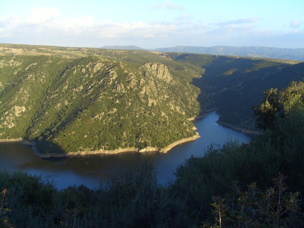 Lake Omodeo (Italian: Lago Omodeo, Sardinian: Lagu Omodeu) is an artificial lake in central west Sardinia, Italy. The lake was constructed in the 1920s. The dam, designed by the engineer Angelo Omodeo, was inaugurated in 1924, at that time it was the largest reservoir in Europe. The lake length is 20 km. Today, Lake Omodeo is the largest artificial reservoir on Sardinia. A new dam was built in 1997, dedicated to the Sardinian medieval judge Eleonor of Arborea, it is 582 m long and 120 m wide.