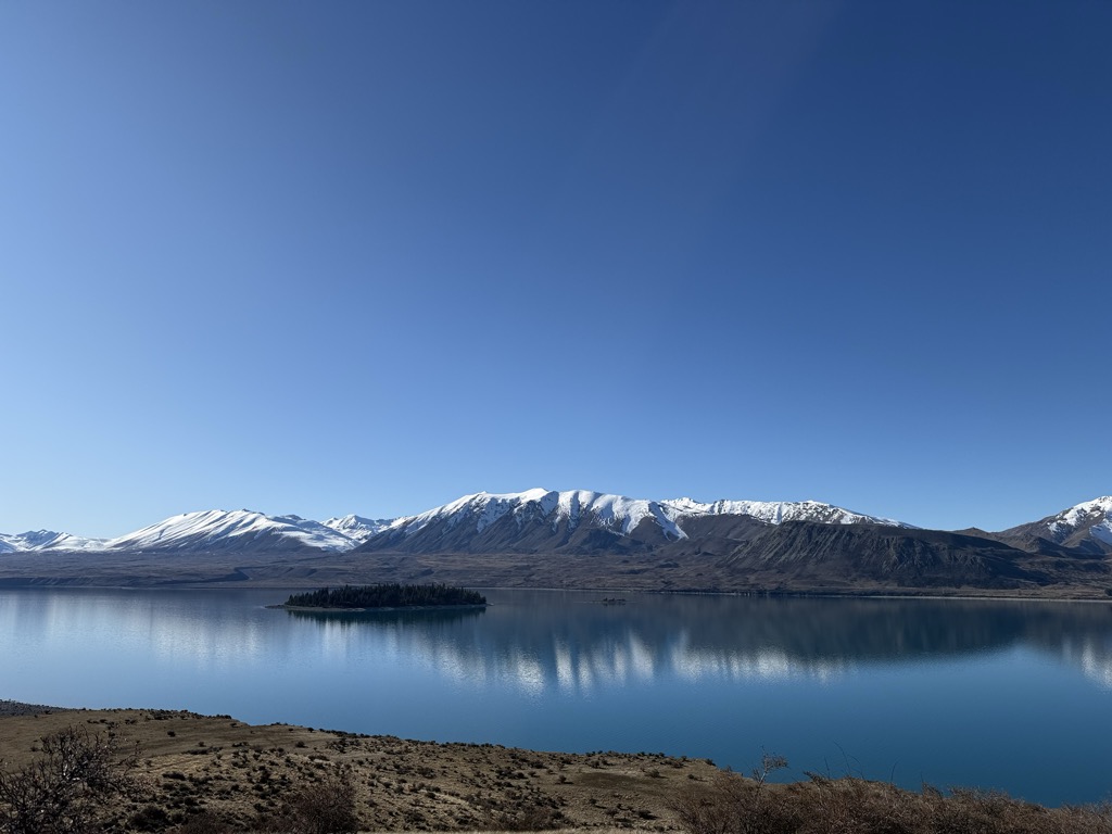 Lake Tekapo (Māori: Takapō) is the second-largest of three roughly parallel lakes running north–south along the northern edge of the Mackenzie Basin in the South Island of New Zealand (the others are Lake Pukaki and Lake Ōhau). It covers an area of 83 km2 (32 sq mi) and is at an altitude of 710 m (2,330 ft) above sea level.