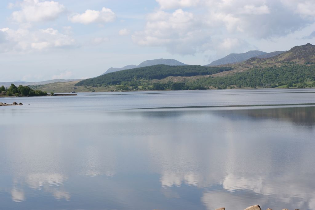 Llyn Trawsfynydd is a large artificial reservoir situated near the village of Trawsfynydd in Gwynedd, North Wales. With a total surface area of 4.8 km2 (1,200 acres) the reservoir is slightly more extensive than Wales's largest natural lake, Bala Lake at 4.5 km2 (1,100 acres).