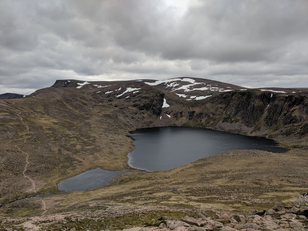 Loch Etchachan is a remote freshwater loch set deep within the central Cairngorms plateau, in the Cairngorms National Park, located in the eastern Highlands of Scotland. It is the highest waterbody of its size in the UK, the surface being 927 metres (3,041 ft) above sea level. However, the highest named bodies of water in the UK are Loch Coire an Lochain, which lies 6km to the west of Loch Etchachan on the opposite side of the Lairig Ghru, and Lochan Buidhe, which lies between Cairn Lochan and Ben Macdui.