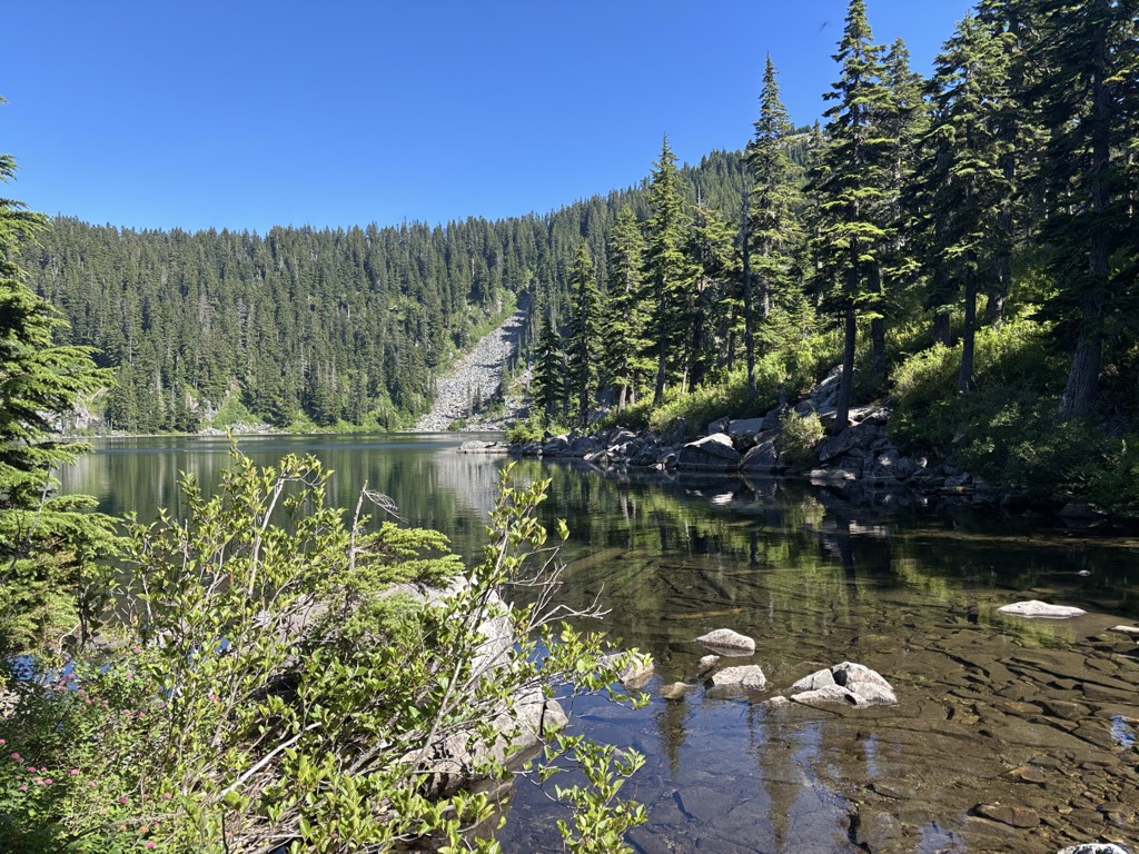 Mason Lake is a naturally occurring mountain lake located between Mount Defiance and Bandera Mountain near Snoqualmie Pass, King County, Washington. Accessible only by hike via the 3.4-mile-long (5.5 km) Mason Lake Trail (also known as "Ira Spring Memorial Trail"), splits to Mount Defiance trail while continuing past the Island Lakes towards Pratt Lake trail at Olallie Lake's north shore. Mason Lake is at an elevation of 4,200 feet (1,300 m)t.