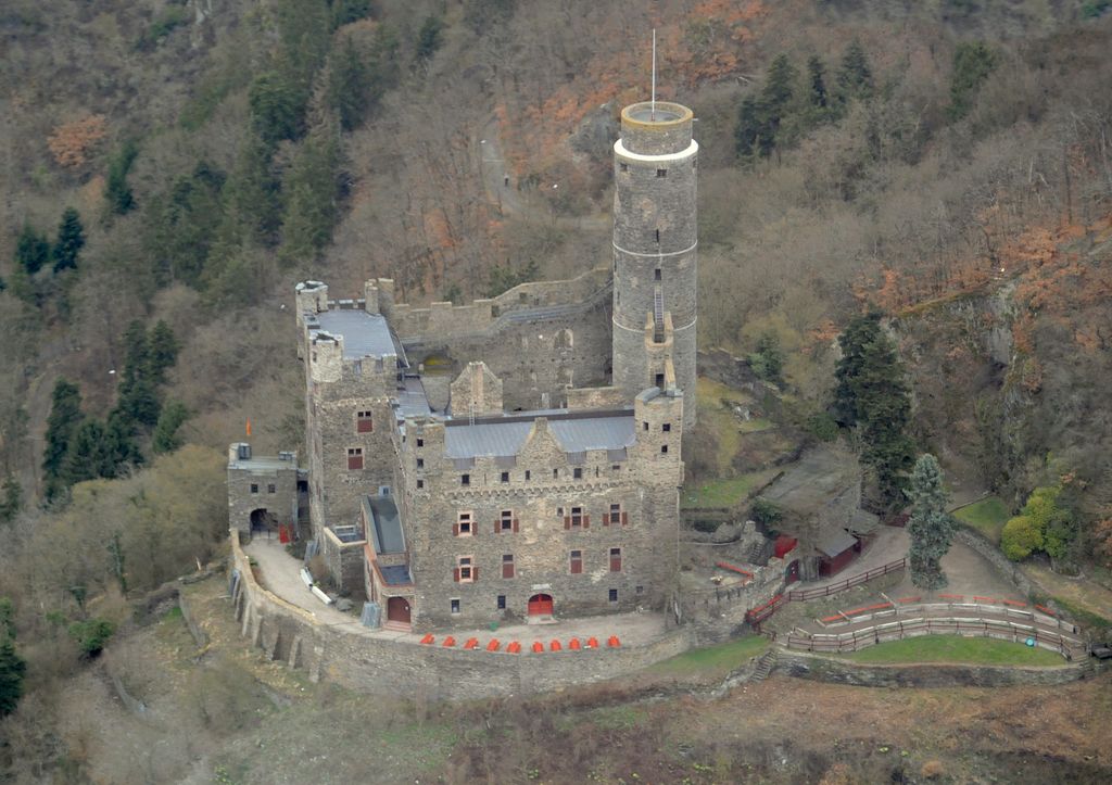 Maus Castle (German: Burg Maus, meaning Mouse Castle) is a castle above the village of Wellmich (part of Sankt Goarshausen) in Rhineland-Palatinate, Germany. It lies on the east side of the Rhine, north of Katz Castle (Cat Castle) in Sankt Goarshausen and opposite Rheinfels Castle at Sankt Goar across the river.