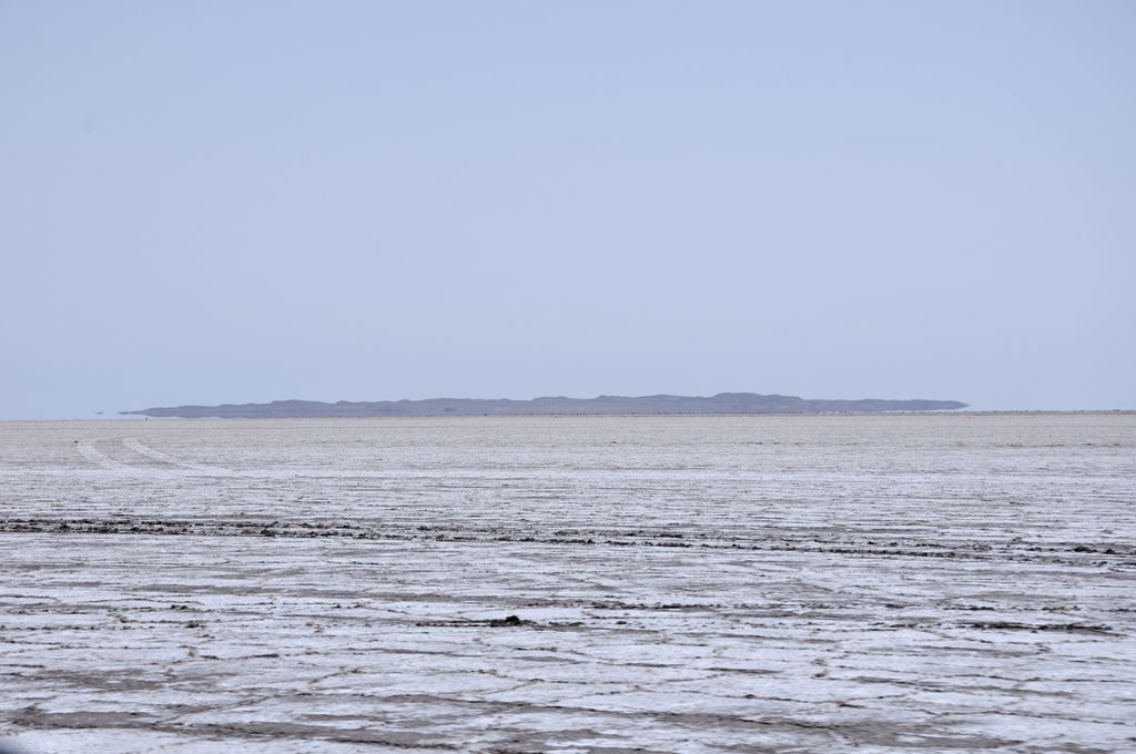 Namak Lake (Persian: دریاچه نمک, romanized: Daryâče-ye Namak, i.e., salt lake) is a salt lake in Iran. It is located approximately 100 km (62 mi) east of the city of Qom and 60 km (37 mi) of Aran va bidgol at an elevation of 790 metres (2,590 ft) above sea level. The lake is a remnant of the Paratethys sea, which started to dry up from the Pleistocene epoch, leaving Lake Urmia and the Caspian Sea and other bodies of water. The lake has a surface area of about 1,800 km2 (690 sq mi), but most of this is dry. Water only covers 1 km2 (0.4 sq mi). The lake only reaches a depth between 45 centimetres (17.72 in) to 1 metre (39.37 in).