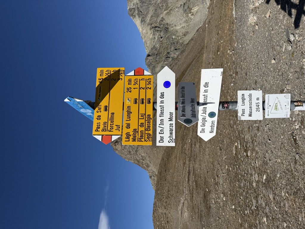 Lunghin Pass is a mountain pass (2645 m) and a triple watershed near Piz Lunghin in the Swiss canton of Graubünden. The water running off the pass heads toward the North Sea via the Rhine, Mediterranean Sea via the Po, or Black Sea via the Danube. Lunghin is said to go back to the Italian surname Longhini.