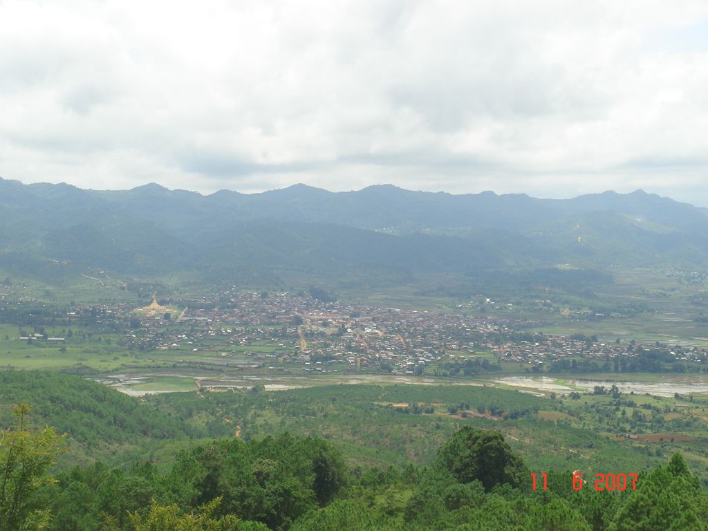 Pinlaung is a town 1,510 metres (4,950 ft) above sea level and seat of Pinlaung Township, in the Pa-O Self-Administered Zone of Shan State of eastern-central Burma. It lies along National Road 54, north-west by road from Loikaw. Running through the city center is a rail line connecting Loikaw to Kalaw, two major tourist towns in the area.
