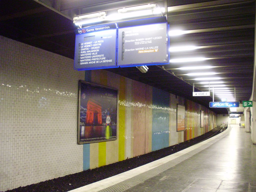 Saint-Germain-en-Laye is the main railway station serving Saint-Germain-en-Laye, France. The station opened on 14 August 1847 with the opening of the ligne de Saint Germain (from Paris to Saint-Germain), an atmospheric railway. Twelve years later, conventional locomotives replaced the atmospheric powered engines. The original station had a large veranda building above the terminating lines.