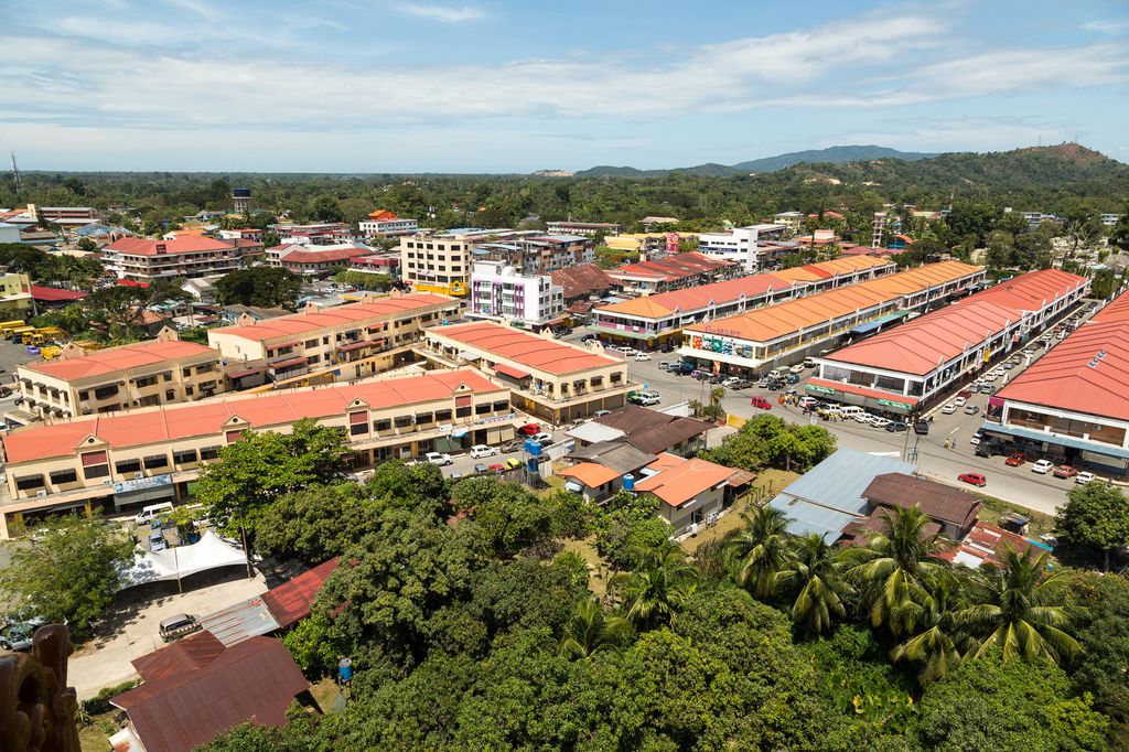 Tuaran (Malay: Pekan Tuaran) is the capital of the Tuaran District in the West Coast Division of Sabah, Malaysia. Its population was estimated to be around 128,200 in 2019 with half the population consists of ethnic Dusuns, most of the Lotud ethnic subgroup as well of Bajau descent. The remainder is mostly of the Malaysian Chinese community, particularly from the Hakka subgroup and Malay. The town is bordered on three sides by the Tuaran River. It is located 34 kilometres (21 mi) north of the state capital Kota Kinabalu, and is strategically situated along the main highway linking Kota Kinabalu with the north of Sabah.