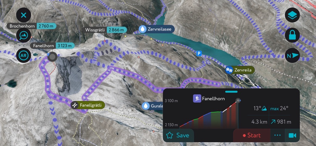 The Swiss Alps are among our best-mapped areas, and the PeakVisor App offers thousands of ski tour adventures.