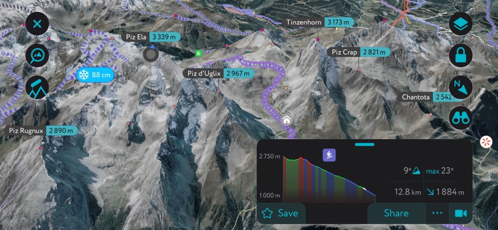 Let's take a quick look at a couple of the classic ski tours in the Albula Alps and some of the features that make the PeakVisor App perfect for planning your ideal alpine getaway.