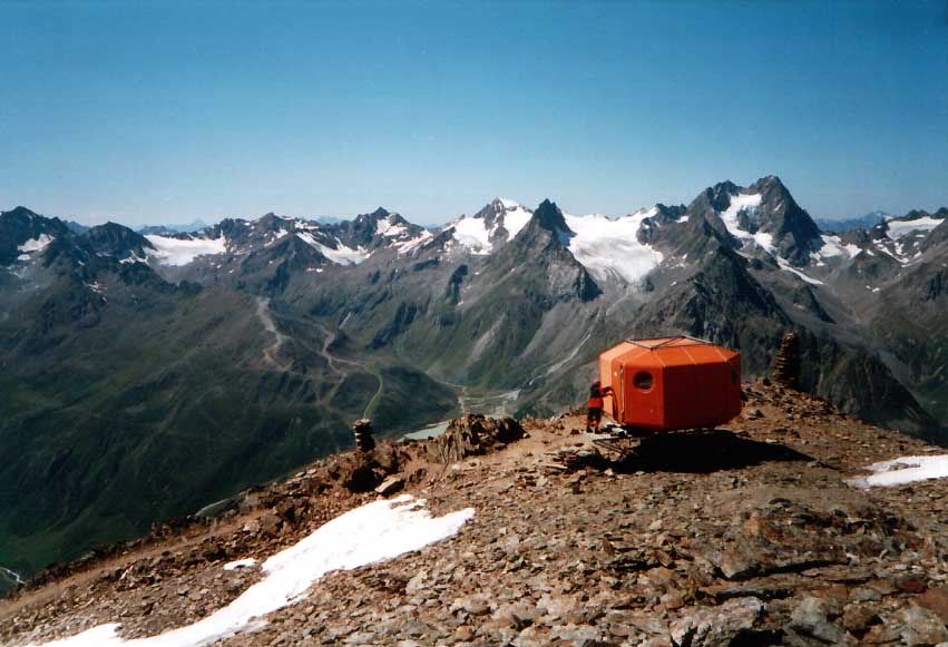The Geigenkamm Group is located in southern Austria and is part of the Ötztal Alps. One of the lesser visited mountain groups in the region, it offers excellent hiking and climbing and an extensive hut system that allows for multi-day adventures. Hohe Geige in Tyrol is the highest peak in the range at 3,394 m (11,135 ft), while Luibiskogel (3,110 m / 10,203 ft) has the greatest topographic prominence (480 m / 1,575 ft).