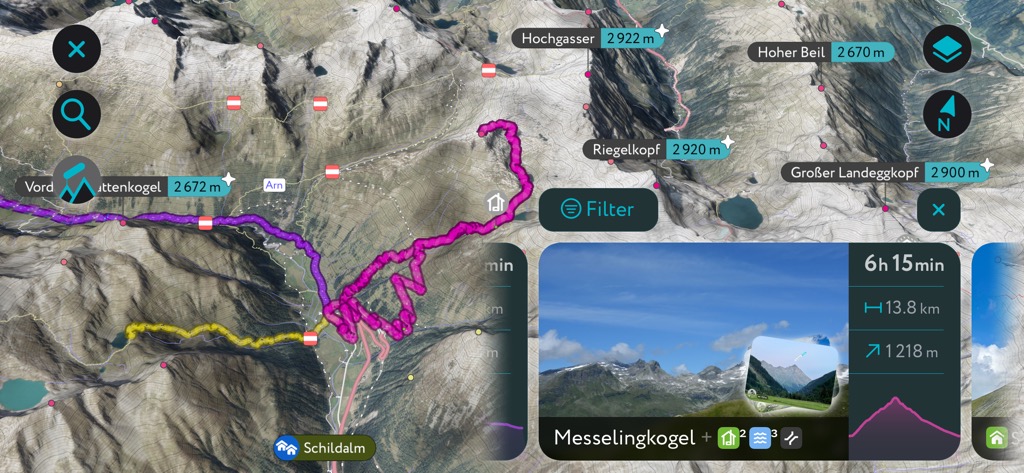 Most recently, the PeakVisor App has included up-to-date weather reports, including snow depths, at any destination. Plus, we've been hard at work adding the details of hundreds of mountain huts, including information on overnight accommodation, dining options, and opening hours. You can also use our Hiking Map on your desktop to create .GPX files for routes to follow later on the app.
