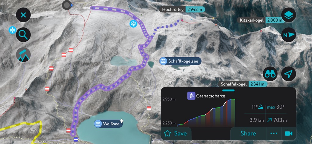 Here's a quick breakdown of a couple of popular ski tours in the Granatspitze Group and a few of the PeakVisor App's features that make it perfect for planning an off-piste ski adventure.