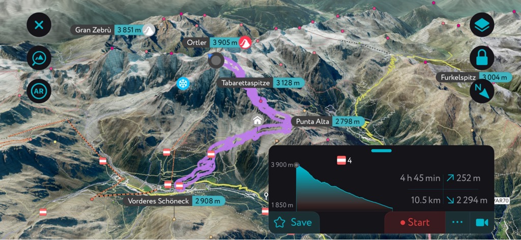 A generation of Ortler’s North Ridge route using PeakVisor’s mobile app. Check out the app to find thousands of routes, trails, peaks, cabins, and even parking areas worldwide. It’s all on here. You can also upload .gpx files if we don't already have a trail on our servers. The PeakVisor app is available for iOS and Android; give it a shot and discover our visually stunning 3D Maps, adding a new dimension to your alpine adventures.