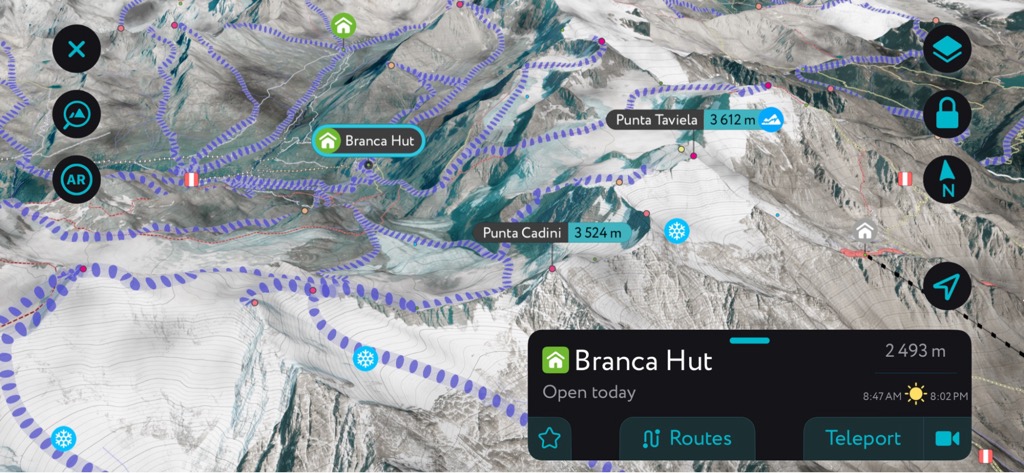 The Branca Hut sits at the nexus of dozens of unforgettable ski tours. The app includes tens of thousands of backcountry ski routes in winter mode. It also offers a detailed information panel with schedules, pictures, and contact information for most of the popular refuges in the Alps.