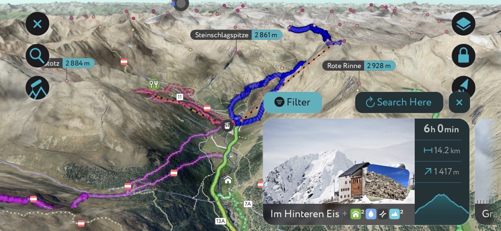 Check out our PeakVisor app for Peak Identification, 3D mapping, personalized route-finding, and adventure tracking, all with our Augmented Reality technology. The app is compatible with most smartphones and serves as your own mountain guide. Moreover, the “Discover” feature allows you to find the best trails in an area, whether planning a trip in advance or from the parking lot when you arrive.