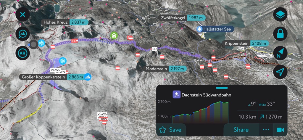 Explore Salzkammergut and Upper Austria Alps with the PeakVisor 3D Map and identify its summits.