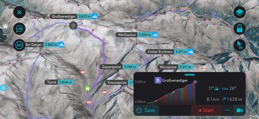 Explore Venediger Group with the PeakVisor 3D Map and identify its summits.