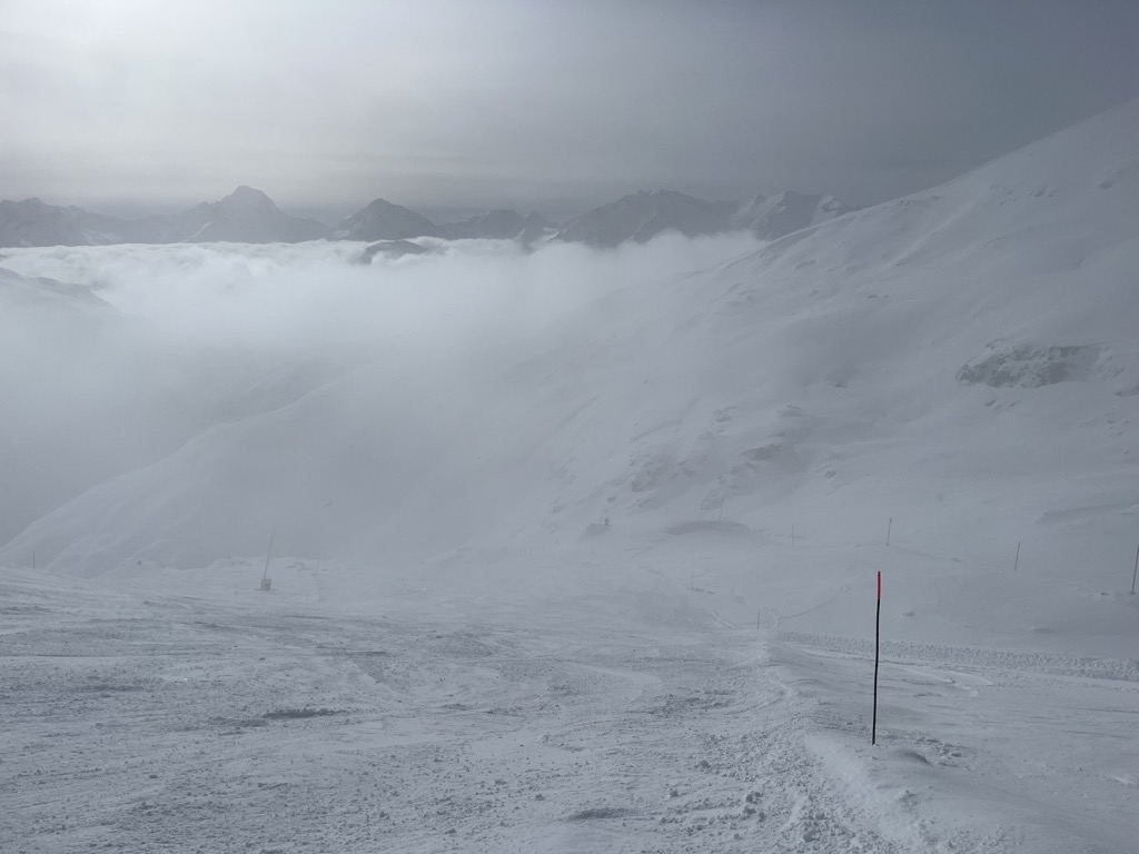 Another thing to consider is Alpe d’Huez’s alpine nature. The resort is nearly entirely above treeline, contributing to its epic character but also making for brutal conditions during bad weather. Trying to ski here during a whiteout can be a miserable experience that can result in injury. Just this past year, a friend tore multiple ligaments on her knee while navigating the snowfields in low visibility.