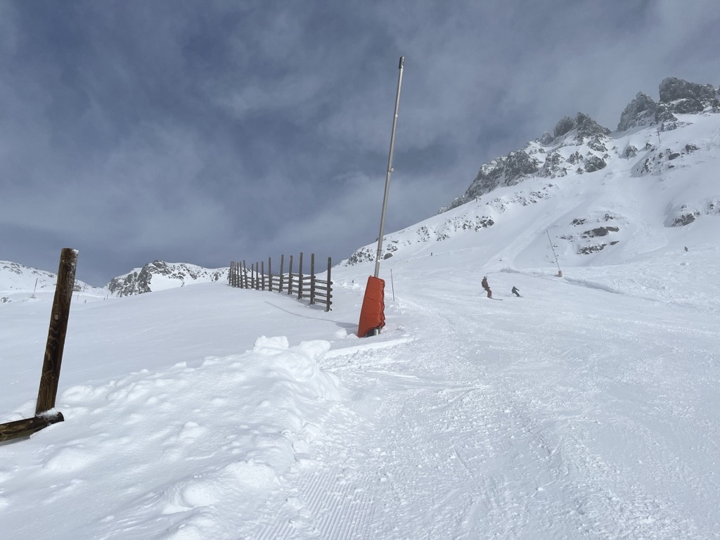 Due to the southerly exposure, coverage can be limited on the resort’s lower slopes even though the terrain is mostly above 1600 m (5249 ft). Grass can often show on the off-piste sections during dry spells. However, the resort maintains excellent snowmaking capabilities; the necessary pistes are always covered throughout the season.