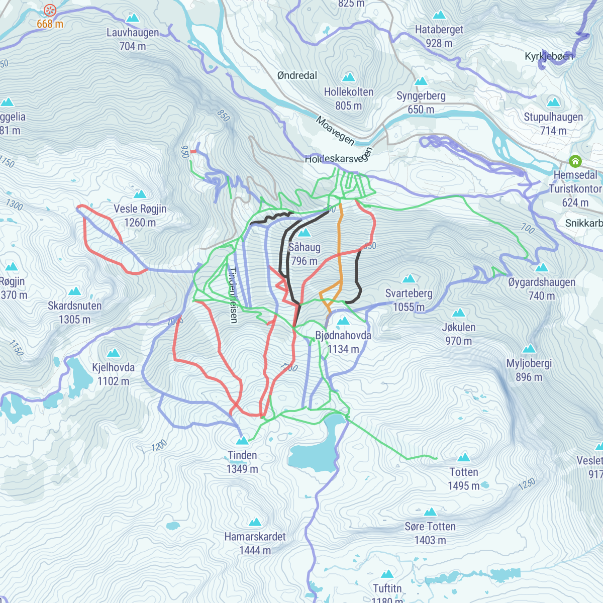 Hemsedal is one of more than 170 ski resorts in Norway. It is located in the Viken region in the central part of the country in the Scandinavian Mountains at an altitude between 620 and 1,450 m with a difference of 830 m. It is the nearest large ski resort to Oslo, the capital of the country. The main feature of Hemsedal ski resort is that it is the third-biggest ski area in Norway after Trysil, and Oppdal and together with Voss, Hafjell, Hovden, and Kvitfjell, all of which has more than 40 km of slopes and more than 10 ski lifts in total. The resort is best suitable for easy skiing — most of its slopes are blue. For intermediate skiers, it has just about 10 km of red slopes. The most common type of ski lift is a chairlift. The Hemsedal season is from early November to early May in general.