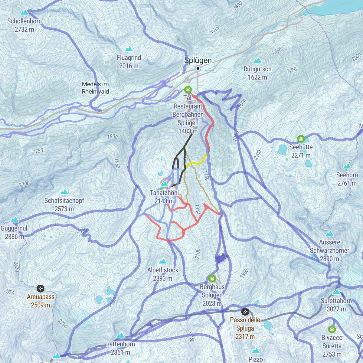 There are 6 open lifts in Splügen-Tambo out of total. Check the opening hours and days of Splügen-Tambo ski lifts, stations, altitude, and other information below.