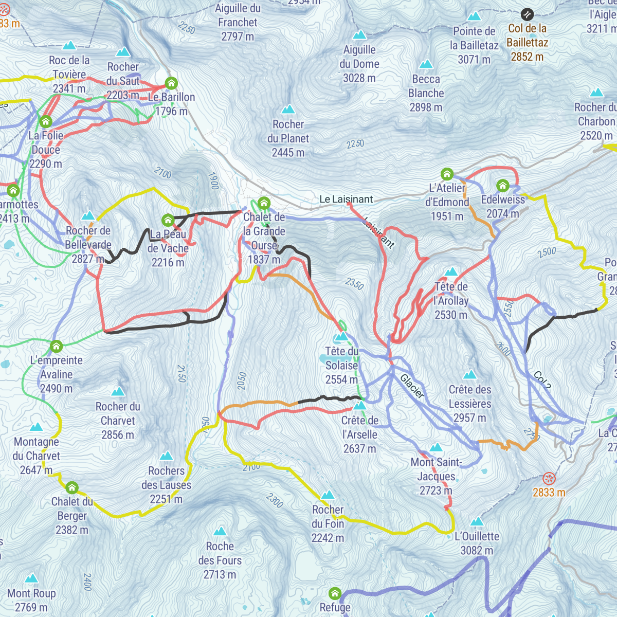 Val d'Isère is one of more than 250 ski resorts in France. It is located in the Upper Savoy department of the Auvergne-Rhône-Alpes region in the Vanoise Massif in the larger Graian Alps range of the Western Alps. It is one of the nearest ski resorts to the French cities of Grenoble and Chambery, and the Italian Aosta and Turin. The main feature of Val d'Isère ski resort is that it was the site of the 1992 Albertville Winter Olympics. Now it hosts World Cup races on a regular basis. The resort has more than 100 km of slopes and more than 30 ski lifts in total. It is also in the top 5 ski resorts of France as 1/2 of the larger Tignes/Val d'Isère area with more than 300 km of slopes and more than 80 ski lifts in total. The altitude of this entire area is between 1,550 and 3,456 m with the difference of 1,906 m but to experience it you need to ski in the Tignes. The area is best suitable for easy skiers — most of its slopes are blue. However, for intermediate and advanced skiing, it has more than 50 km of red and black slopes each. The most common type of ski lift is a chairlift. The Tignes/Val d'Isère season is from late November to early-May in general.