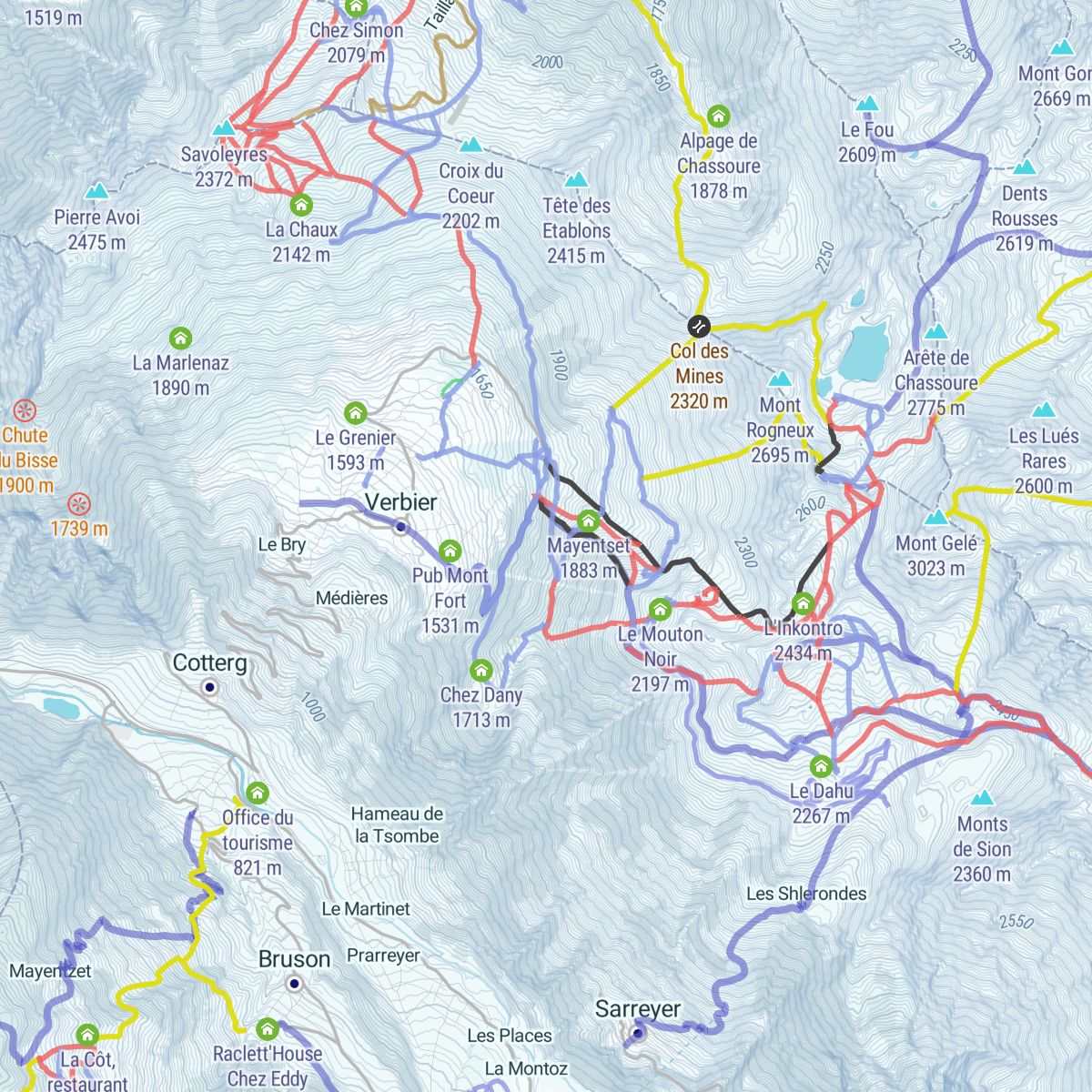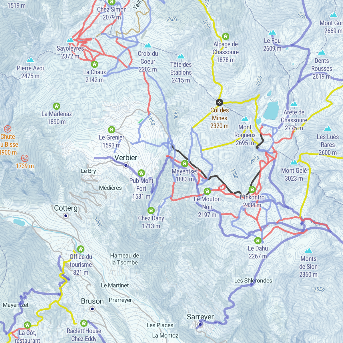 The ski village La Tzoumaz is located on the same mountain as Verbier, but on the northern slope. It is sort of the other side of the mountain. If your accommodation is in La Tzoumaz, you can access the Verbier southern slopes by going up with a cable car to Savoleyres.